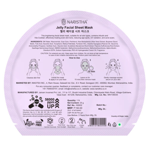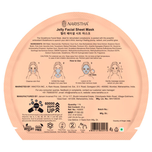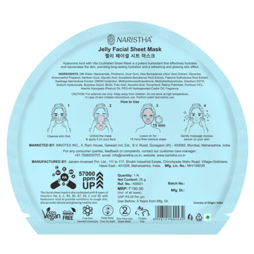 Naristha® Jelly Facial Sheet Mask delivers intense hydration with a cooling jelly texture that soothes and refreshes. A quick K‑Beauty inspired ritual for Indian skin to reveal a radiant dewy glow in minutes.